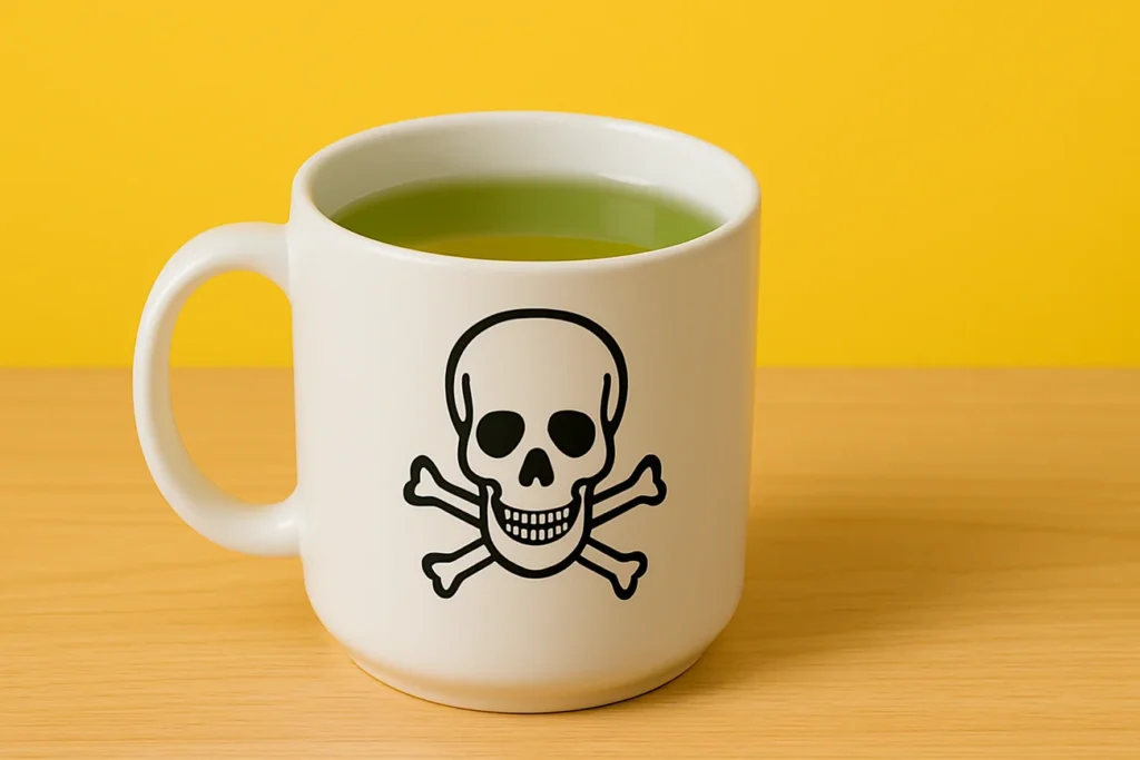 У зеленому чаї міститься кофеїн і таніни. При надмірному вживанні це може викликати головний біль, дратівливість і навіть безсоння. Безпечна норма — 2–3 чашки на день.