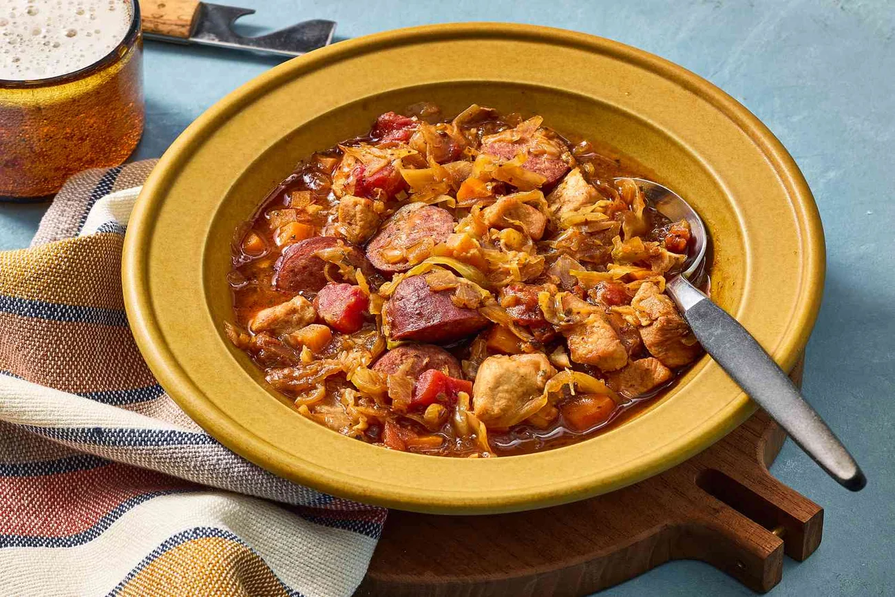 - Бігос у мультиварці. Страву можна готувати в мультиварці в режимі «Тушкування». Спочатку обсмажте м’ясо з цибулею та морквою в режимі «Смаження», потім додайте капусту, томатну пасту та спеції. Влийте трохи води або бульйону, закрийте кришку і залиште на 2 години — страва приготується практично без вашої участі.