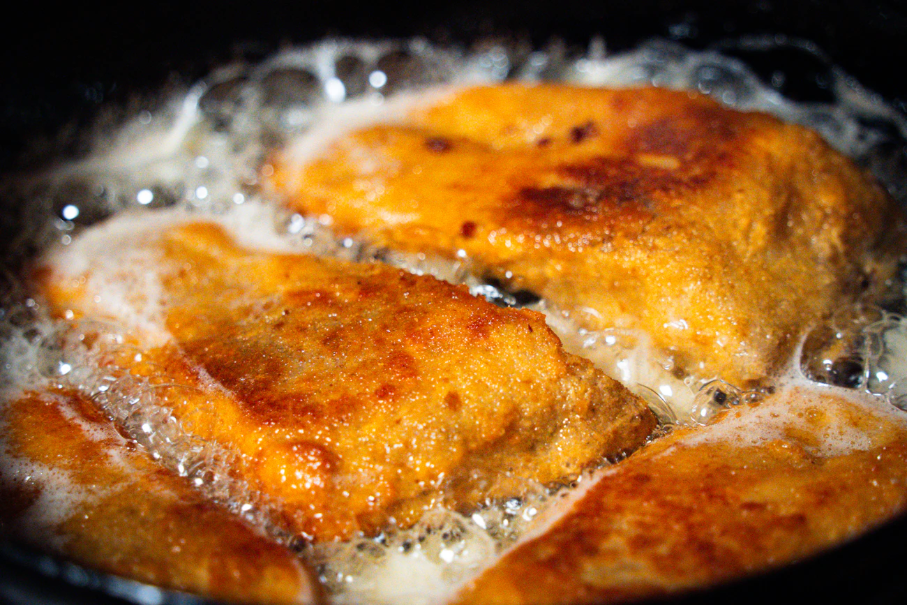 Коли м’ясо підготовлене, настає час для створення тієї самої «шубки», яка зробить страву незабутньою. Ключовий етап — швидке обсмажування. Розігрійте пательню з невеликою кількістю олії та обсмажте відбивні буквально по хвилині з кожного боку до легкої золотистої скоринки. Не намагайтеся довести їх до повної готовності! Цей прийом «запечатує» всі м’ясні соки всередині.