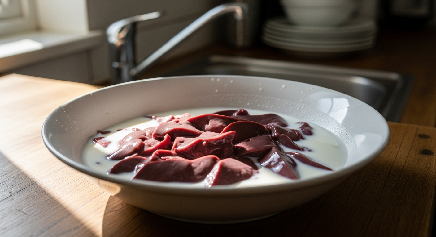 Молоко м’яко нейтралізує гіркоту, надаючи печінці ніжну кремову нотку, і особливо підходить для яловичої та свинячої печінки, які мають більш виражений смак. Якщо чесно, саме яловича печінка найкапризніша з усіх — у неї найщільніша структура і найбільш виражений «субпродуктовий» характер.