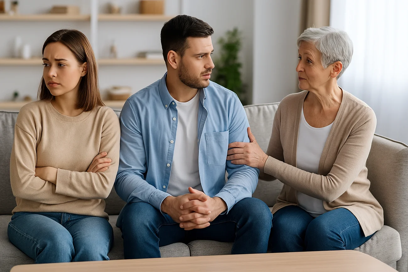 Це чоловік, що надмірно залежить від своєї матері — емоційно, психологічно, а часто й побутово. Його рішення підпорядковані її думці, а ваша роль у стосунках поступово зводиться до “другої мами”.